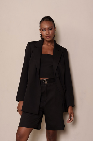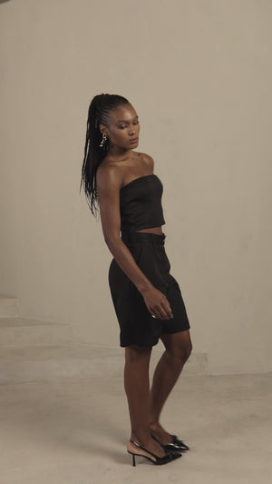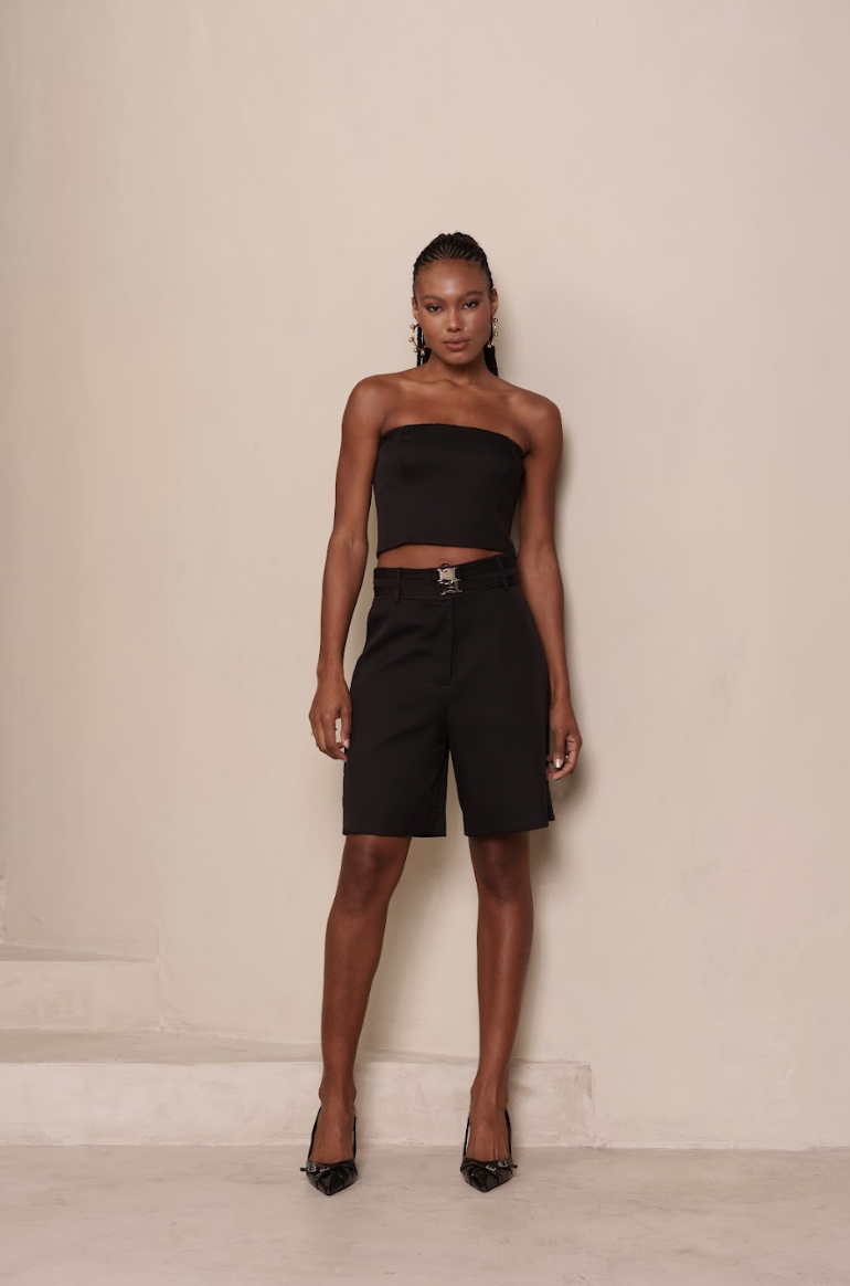 Bermuda em crepe premium, com modelagem estruturada e dois cintos removíveis que permitem diferentes composições. Uma peça coringa que une sofisticação e versatilidade.