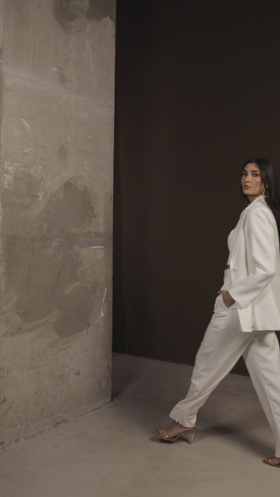 PARA NOITE: Aposte no blazer fechado, com o cinto ajustado, combinado com nossa Calça Francesca e salto fino. Finalize com uma clutch minimalista para um visual noturno elegante e marcante.