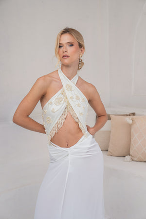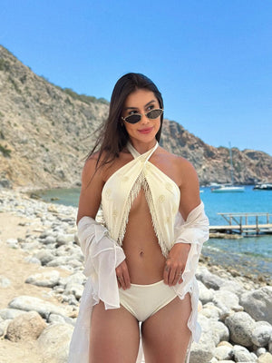 O Body Sol Bordado Pérolas é uma peça para quem aspira por um look cheio de detalhes. A delicadeza das pérolas traz uma tendência forte das conchas e itens do mar.