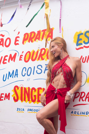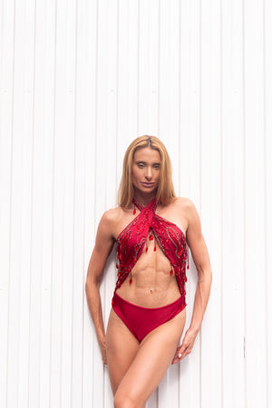 Body de malha Vermelho com bordados em canutilhos, miçangas e cristais hand made.