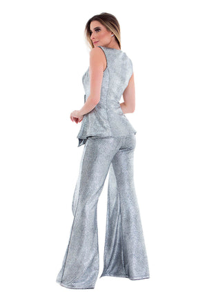 Calça Flare Fenda Prata