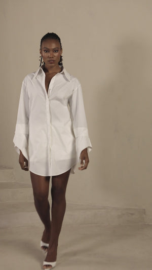 Camisa em tricoline com mangas amplas e cinto removível. Uma peça statement que pode ser usada como vestido ou camisa oversized.