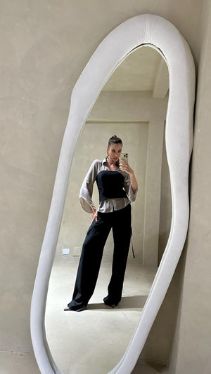 • Para o trabalho: Use sobre uma blusa de tom neutro e a calça diana, adicionando o cinto para definir a silhueta, criando um visual profissional e sofisticado, ideal para reuniões e compromissos.