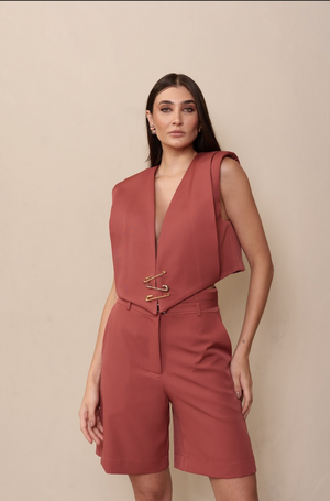 Colete em crepe premium com design estruturado e ombreiras. Uma peça marcante que traz sofisticação e ousadia na medida certa.