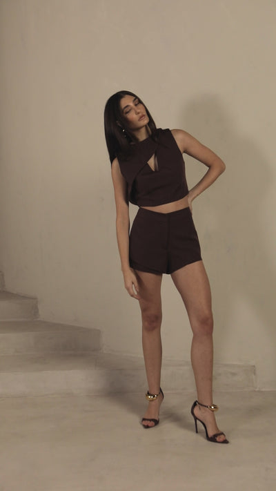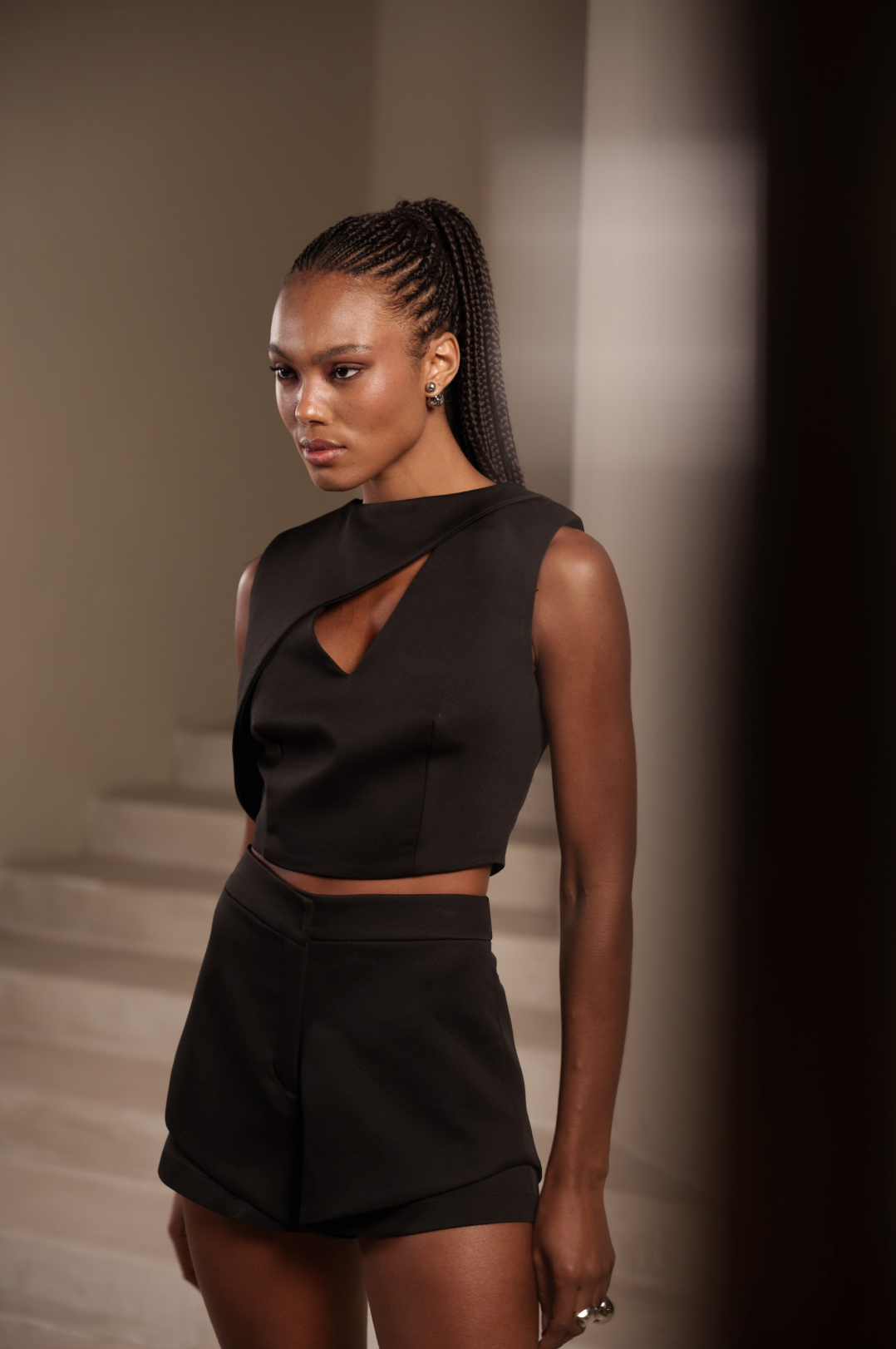 Short em crepe premium com modelagem estruturada e caimento impecável. Uma peça que une conforto e estilo em diferentes ocasiões.