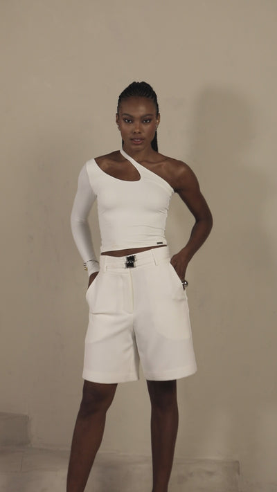 Blusa assimétrica em malha fluity, com recortes estratégicos e design contemporâneo. O detalhe de uma manga longa contrasta com a assimetria elegante, tornando a peça sofisticada e cheia de personalidade. FASHION TIPS PARA O DIA: Use com a Bermuda Siena para...