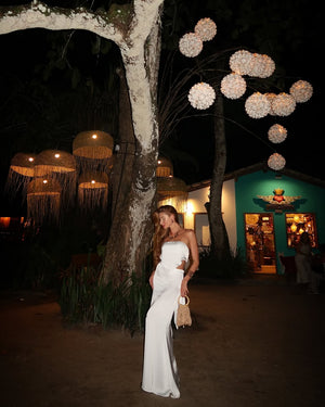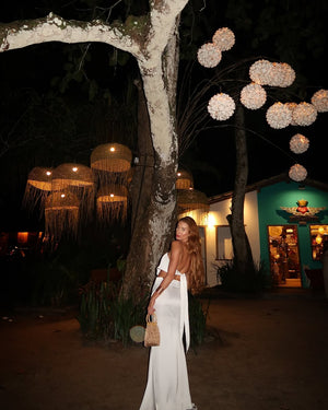 O cetim e o calor do verão se entendem perfeitamente! Combine o top Maldivas com a saia Maldivas para um visual leve e fresh. Complete esse look com acessórios de missangas e seu óculos de sol fav.