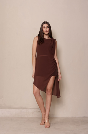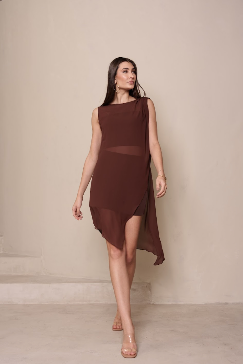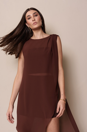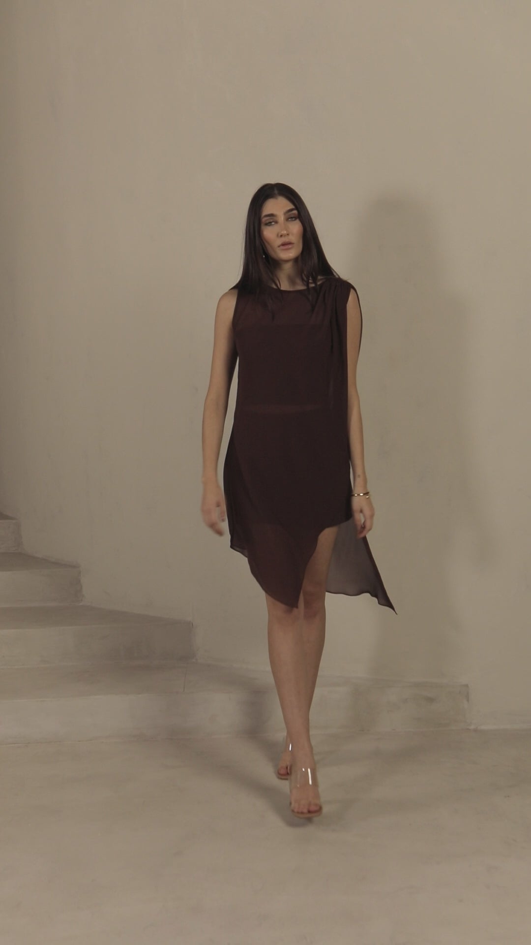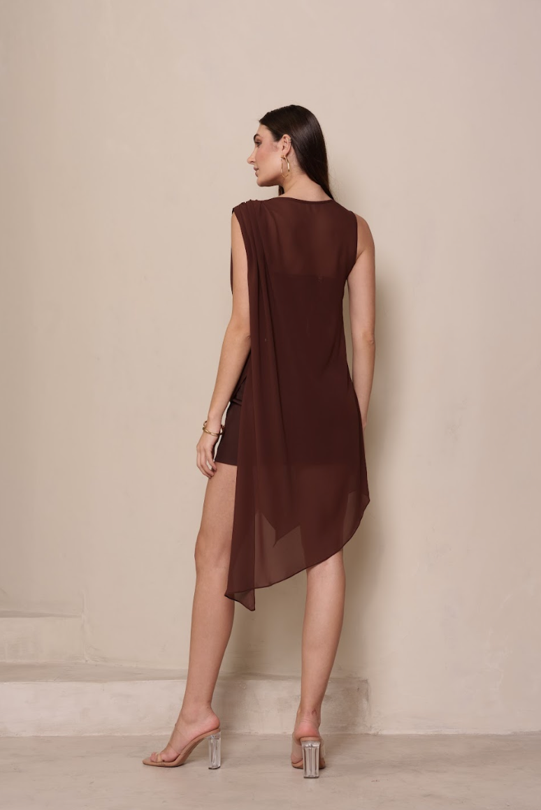 Túnica assimétrica em chiffon leve e sofisticado. O design fluido com caimento elegante traz movimento e modernidade, ideal para criar produções versáteis que transitem entre diferentes ocasiões.