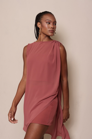 Túnica assimétrica em chiffon leve e sofisticado. O design fluido com caimento elegante traz movimento e modernidade, ideal para criar produções versáteis que transitem entre diferentes ocasiões.