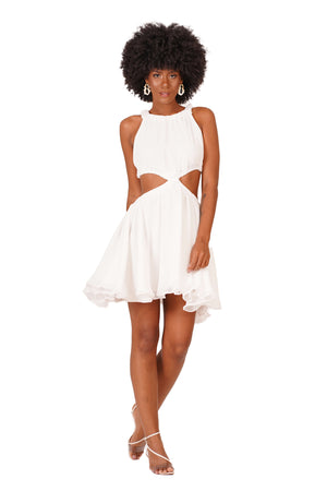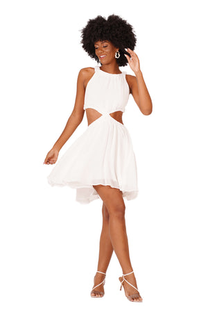 Vestido curto costas nuas godê de georgete tipo chifon off white.
